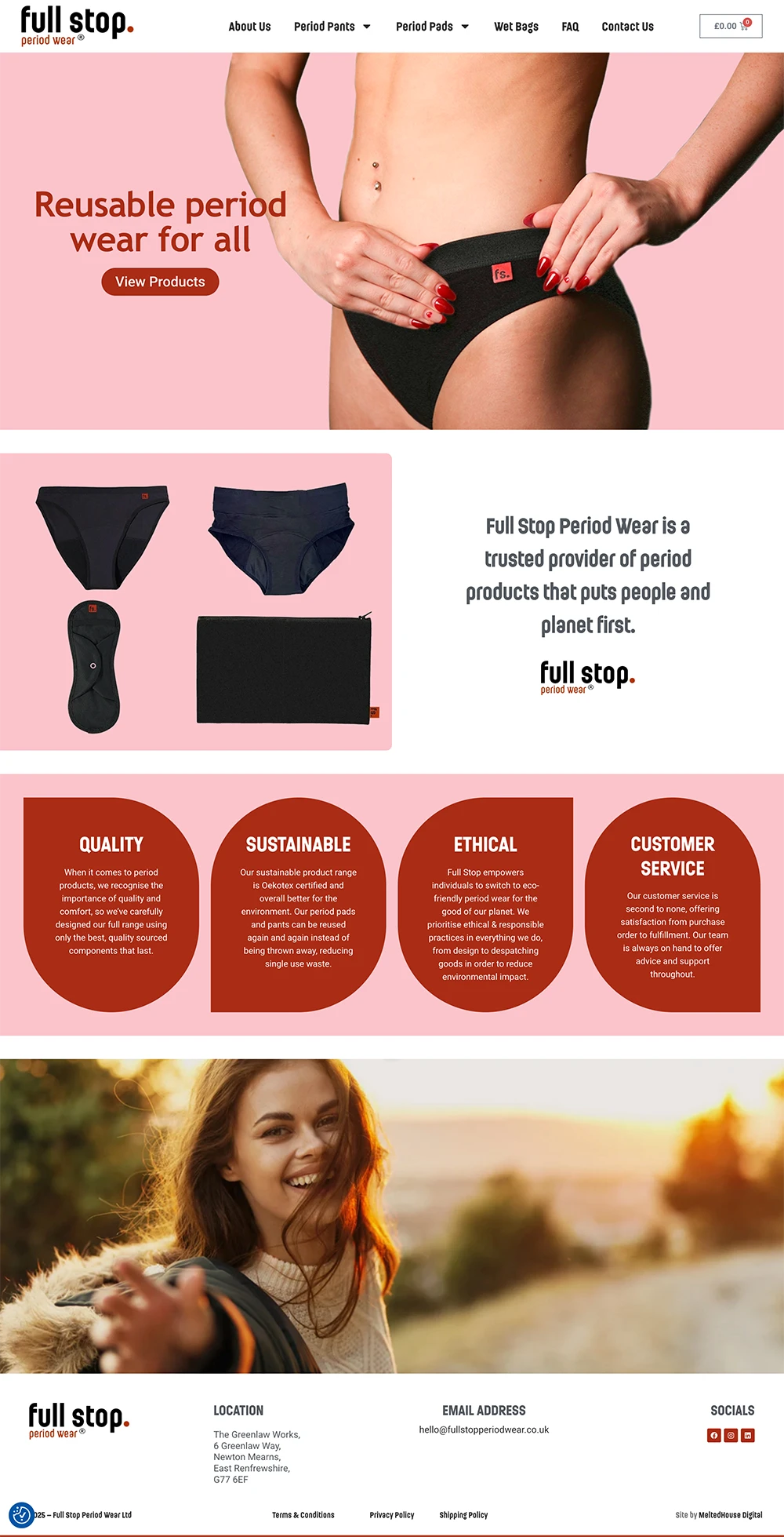 Full Stop Period Wear is a trusted provider of period products that puts people and planet first.